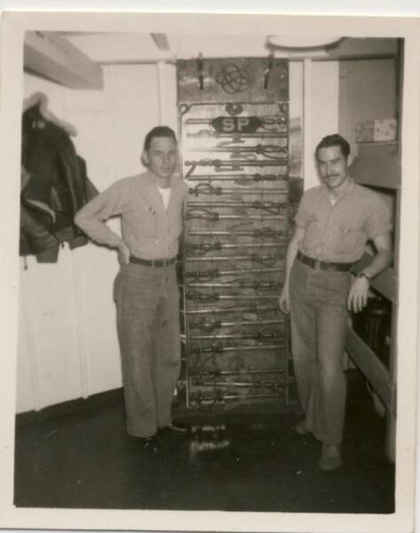 Lewis Becker (right) and unidentified sailor stand by the shore patrol locker